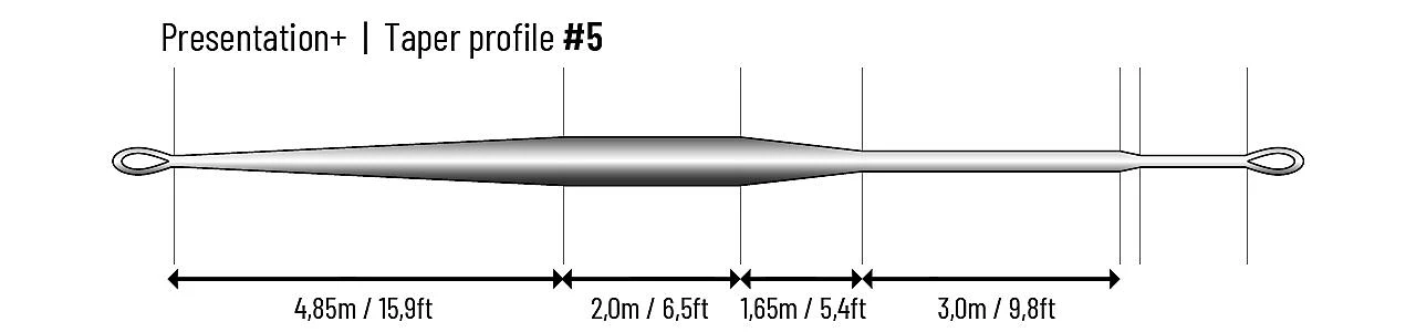 Die erste Presentation Fliegenschnur kam 2002 auf den Markt und ist seit vielen Jahren ein Bestseller. Ursprünglich wurde sie für Forellenangler entwickelt, die primär an kleinen Flüssen und Bächen fischen, wo Genauigkeit und saubere Präsentation wichtiger sind als das Werfen auf große Entfernungen. Die Presentation+ ist eine großartige Allroundschnur, die sich leicht werfen lässt und auf Entfernungen bis zu knapp über 20 Metern sehr gut funktioniert. Beim Werfen auf engem Raum übertrifft diese Schnur Schnüre mit längeren Köpfen deutlich. Sowohl bei Überkopfwürfen als auch bei Unterhand- und Rollwürfen.